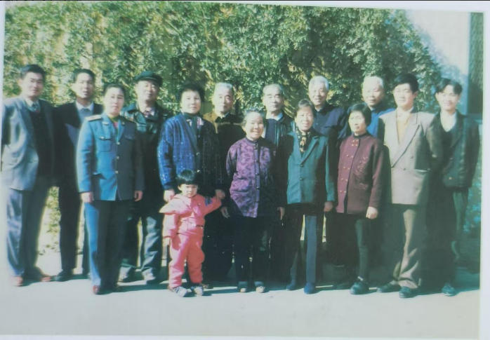 1995年11月,由抗日老八路查二才(后排左起第三人)盛邀,来自杭州、重庆、太原、聊城、莱芜等地的亲人20余人,在山东淄博聚会,纪念抗战胜利50周年。这是部分人员合影。