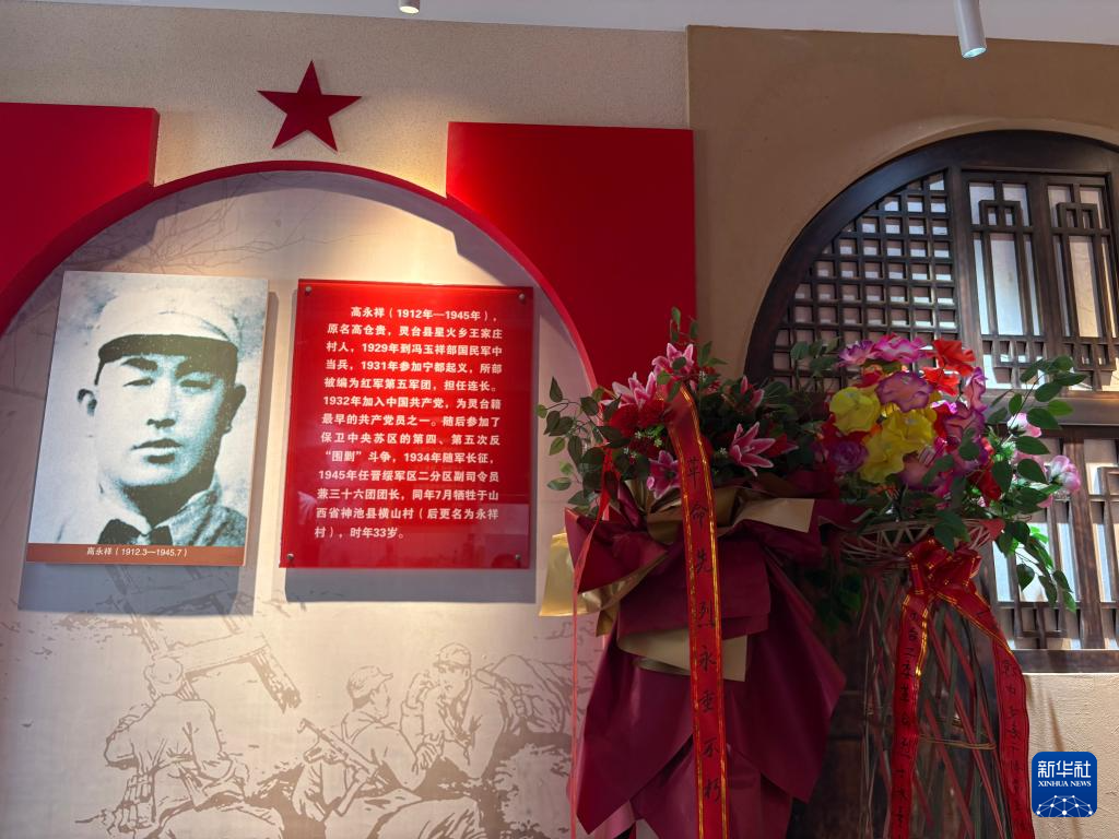 这是7月7日在中共灵台工委纪念馆高永祥专题展厅拍摄的群众自发献上的花篮。新华社记者 刁慧琳 摄