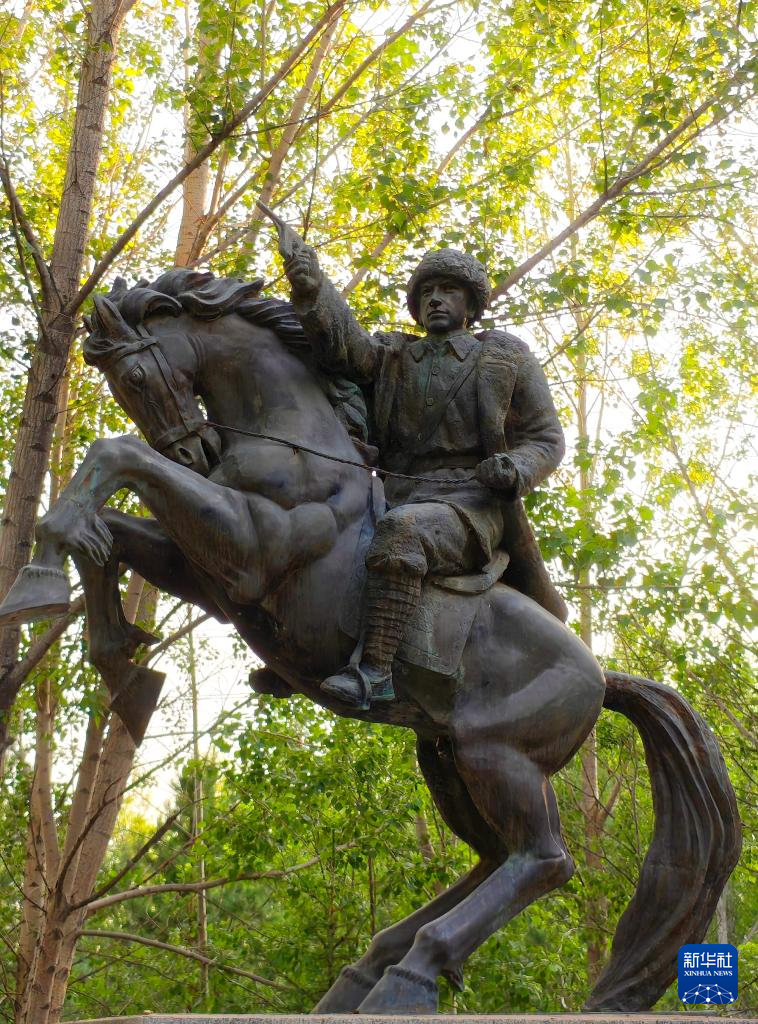 这是7月22日在内蒙古呼伦贝尔市阿荣旗抗联英雄园拍摄的冯治纲雕像。新华社发(王建庭 摄)