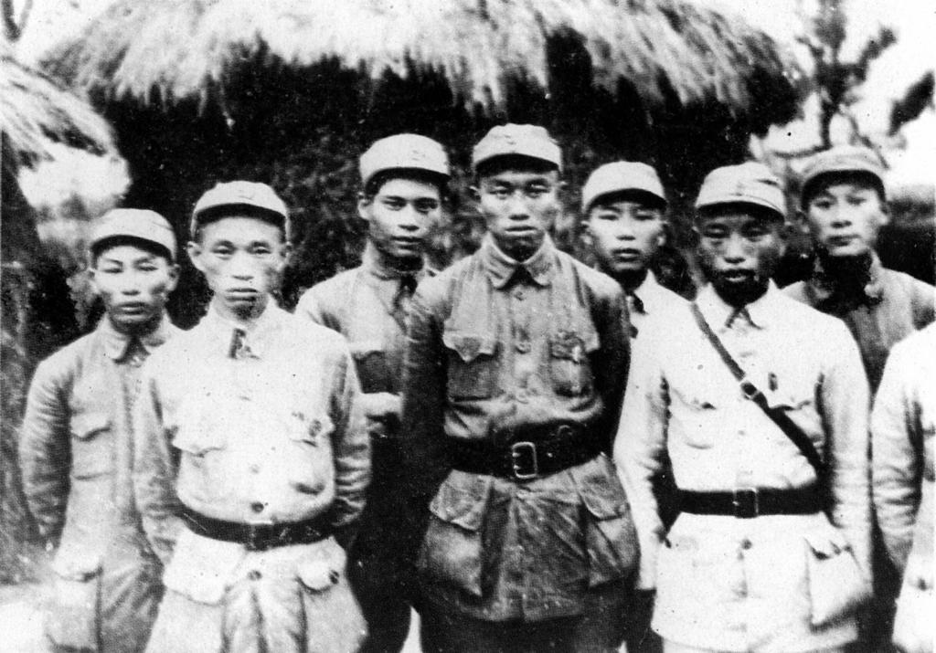 这是1939年初,新四军第一支队二团部分干部在茅山的合影。左起第五位为萧国生(资料照片)。新华社发