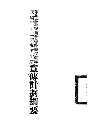 上一篇:华北政务委员会总务厅情报局民国三十三年度下半期宣传计划纲要_[华北政务委员会总务厅情报局编]_[华北政务委员会总务厅情报局]_[1944]