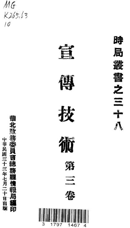 上一篇:宣传工作实施要纲_(伪)华北政务委员会总务厅情报局编_(伪)华北政务委员会总务厅情报局[发行者]_民国33[1944]