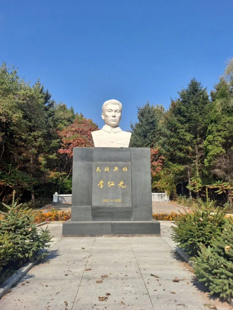 伊通革命烈士陵园内的的李红光塑像