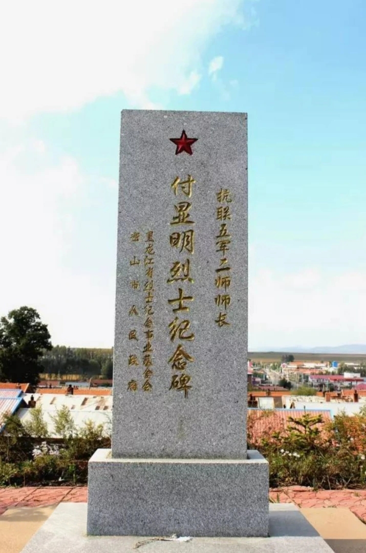 位于密山市烈士陵园内的傅显明烈士纪念碑