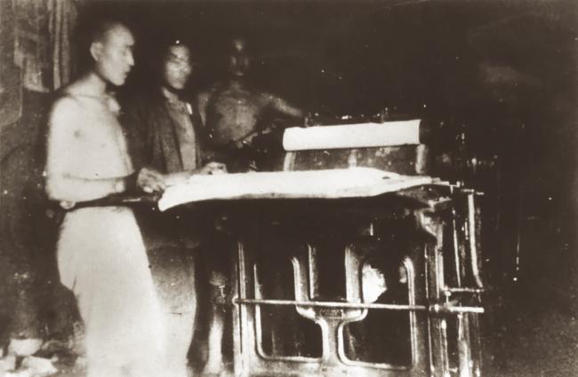 《大众日报》工作人员在油印报纸