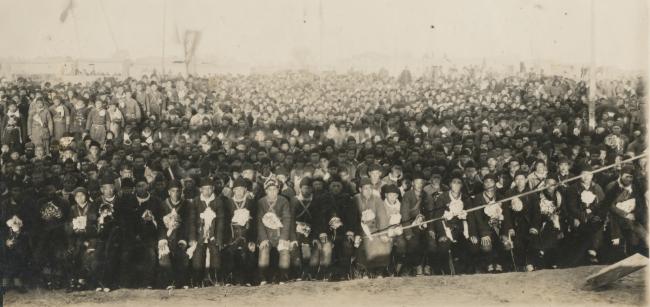 3月2号,广饶县九区召开参军大会,一大早,全区60多个村庄的乡亲们就齐聚会场,会场气氛热烈,掌声雷动,要求参军的青年一个一个往台上跑,每上来一个,挂花队就给他挂上一朵大红花。很短时间内报名参军的就达到1600多人。