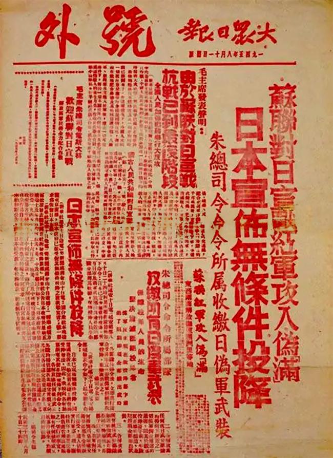 ——1945年8月14日《大众日报》文章《日寇无条件投降与我们的紧急任务》