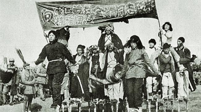 山东解放区群众载歌载舞