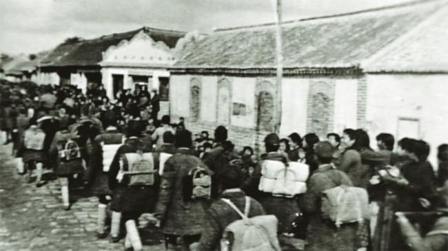 山东解放区群众欢送部队奔赴东北