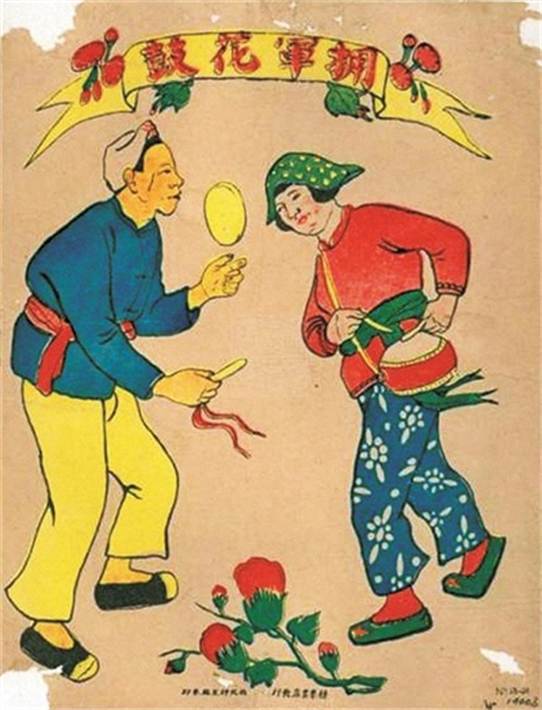 根据歌曲创作的年画《拥军花鼓》。资料照片
