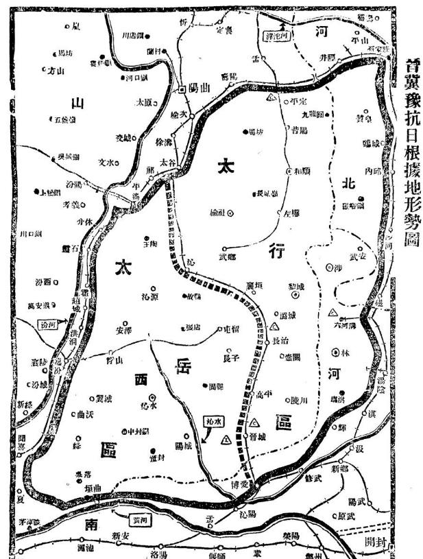 晋冀豫中的太行、太岳区。1944年8月14日延安《解放日报》第四版连载《一二九师与晋冀鲁豫边区》文内配图