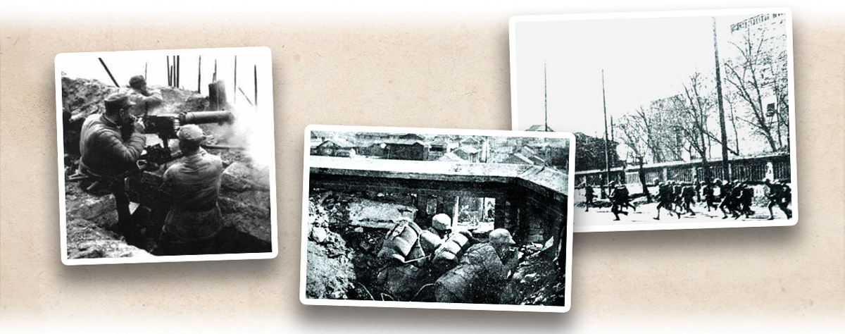 △第三次长沙会战,国民革命军再挫日军。左、中图:与敌激战中的国民革命军;右图:国民革命军在长沙市区追击日军。