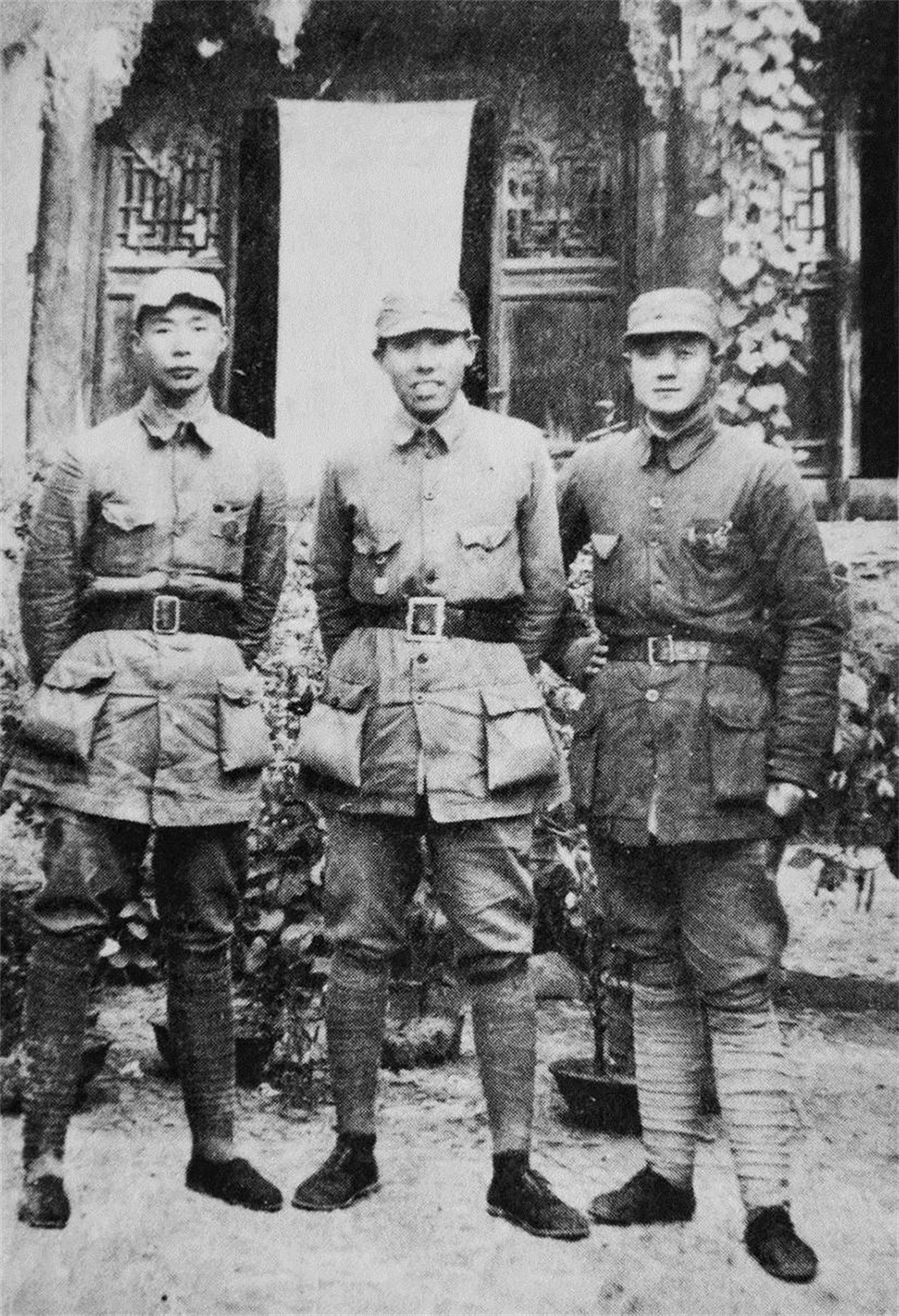 三五九旅参谋长郭鹏(左)、政治部主任袁任远(中)、七一八团团长陈宗尧(右)合影