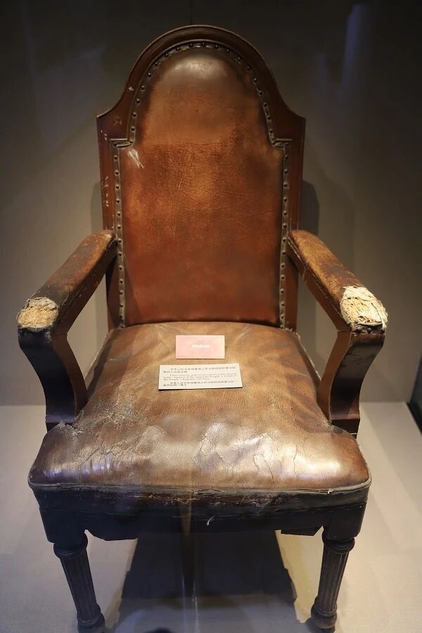 在沈阳审判日本战犯法庭旧址陈列馆里,一把古老庄严的皮木椅在灯光下泛着金色微光。陈列馆相关负责人介绍说,这是当年审判人员使用过的法椅,由辽宁省高级人民法院捐赠,现为国家二级文物。