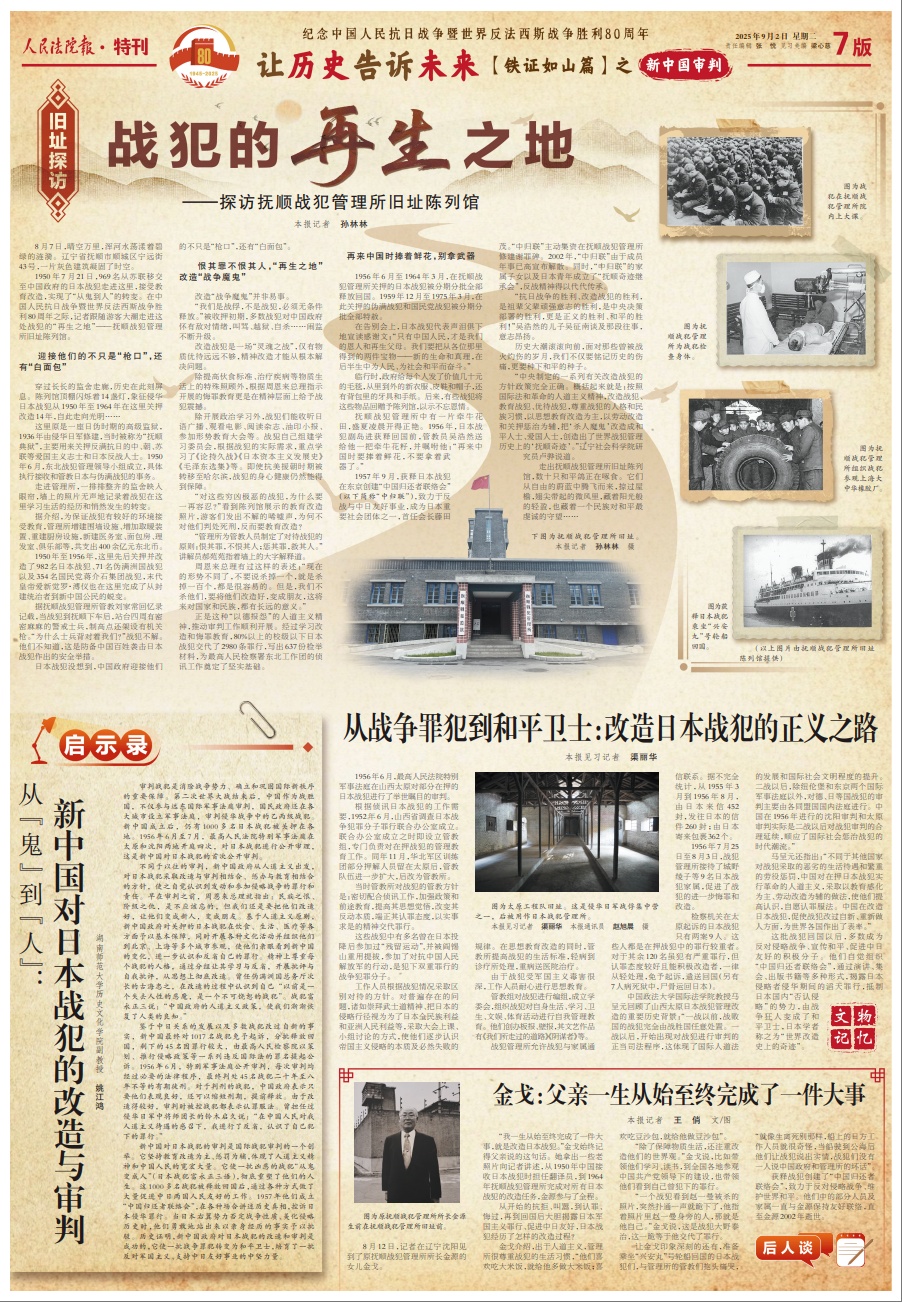 “抗日战争的胜利、改造战犯的胜利,是祖辈父辈顽强意志的胜利,是中央决策部署的胜利,更是正义的胜利、和平的胜利!”吴浩然的儿子吴征南谈及那段往事,意志昂扬。