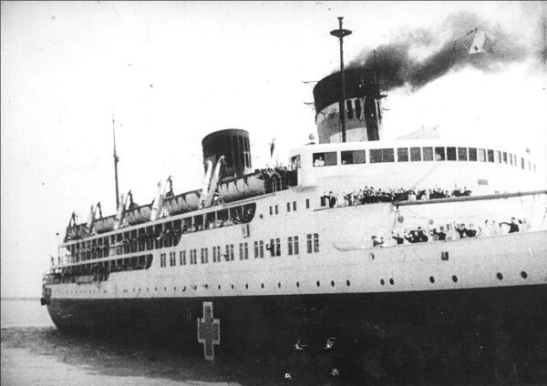 图为获释日本战犯乘坐“兴安丸”号轮船回国。