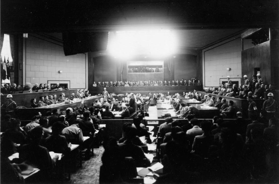 1945年9月2日,日本代表在无条件投降书上签字。1946年1月19日,远东盟军最高统帅部公布《关于设立远东国际军事法庭的公告》和《远东国际军事法庭宪章》,由《日本投降书》上的签字受降国美、中、英、苏、澳、加、法、荷、新等九国和菲律宾、印度各派一名法官组成远东国际军事法庭。同年4月29日,国际检察团对东条英机等28名甲级战犯提起诉讼,认定全体被告自1928年1月1日至1945年9月2日,对中国、美国、英联邦、澳大利亚、新西兰、加拿大、印度、缅甸、马来西亚、法国、荷兰、泰国、菲律宾、苏联等计划、准备或进行侵略战争。1946年5月3日,远东国际军事法庭开庭,1948年4月16日结审。