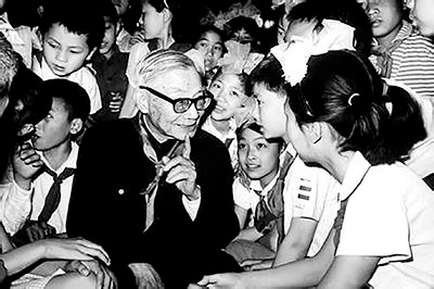 茅以升和孩子们在一起。