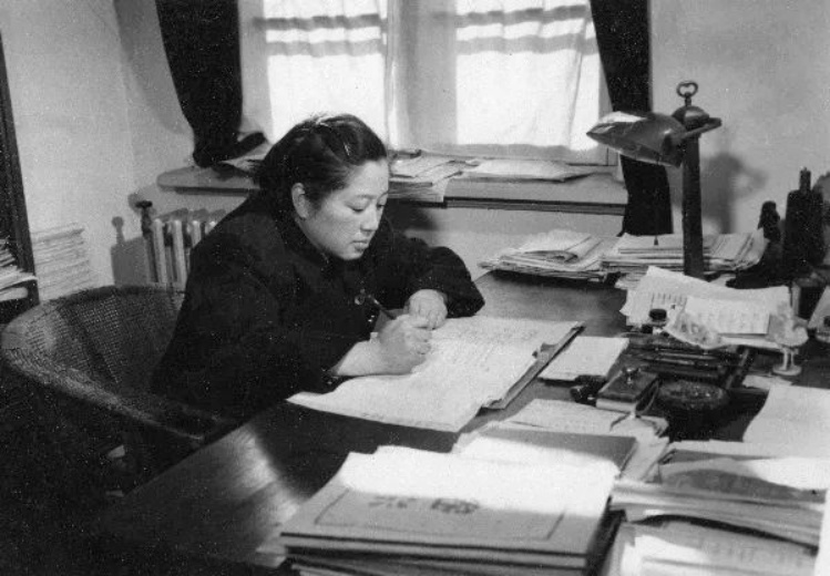 1957年,何泽慧在家工作。