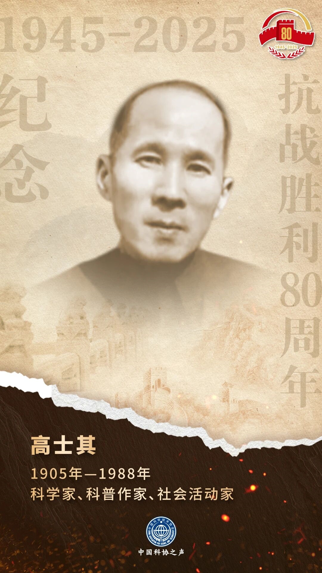 值此中国人民抗日战争暨世界反法西斯战争胜利80周年之际,我们推出【抗战中的科学家】专栏,深切缅怀那些峥嵘岁月中以科学救国的英雄们。他们的精神跨越时空,激励着今天的我们在民族复兴的新征程上继续前行。本期我们为大家介绍其中的代表人物:高士其。