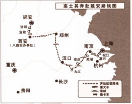 高士其奔赴延安路线图