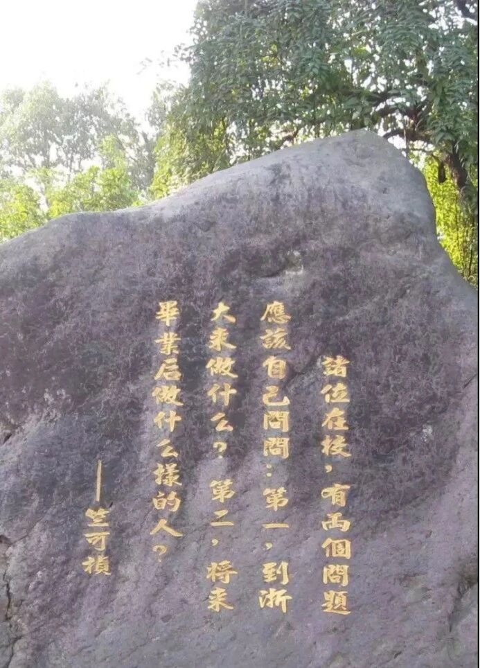 1936年,竺可桢被任命为浙江大学校长,在开学典礼上他向新生提出了两个简单但意味深长的问题:“第一,到浙大来做什么?第二,将来毕业后做什么样的人?”这就是著名的“竺可桢二问”。