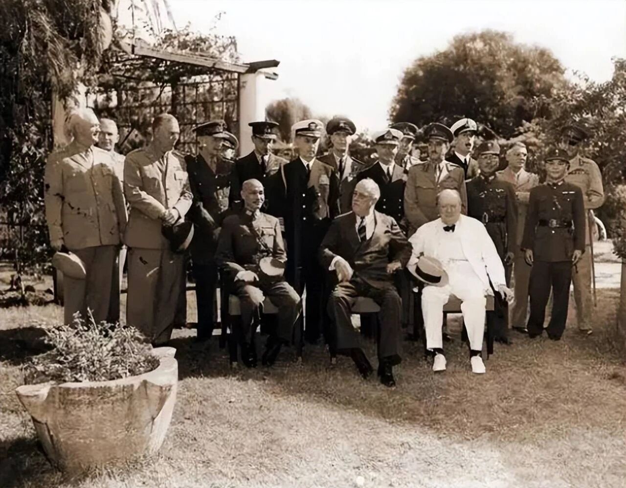 蒋介石、罗斯福、丘吉尔在开罗会议上的合影