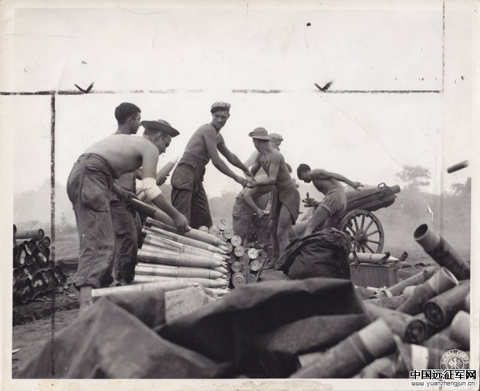 劫掠者士兵使用75毫米榴弹炮在密支那机场向敌人射击