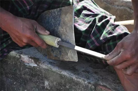 昨晚下了一场大雨,早晨的空气格外清新。每天正式开工前,工人们都会打磨前一天用钝了的工具,记得第一天动工的时候,工具都是新的,铁铲外面有绿色的油漆覆盖,而现在油漆已经掉得差不多了,铲尖透着阵阵寒光,锄头和铁铲的手柄也在工人们每天的汗水中被摩擦得光亮光亮的。