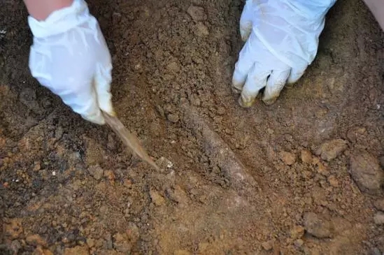 我一点点将遗骸上方的泥土清理开,将夹杂在泥土里的塑料袋和垃圾愤怒的扔到一边,因为环境潮湿,遗骸保存很差,几乎和泥土融为一体,虽然骨头能看出形状,但非常软,一碰就塌。空气中弥漫着小便间散发的异味、额头上的汗珠成排的滚落、顾不上擦,有的滑入眼睛,不疼,但夹着眼泪继续滚落下去,滴到坑里。