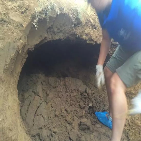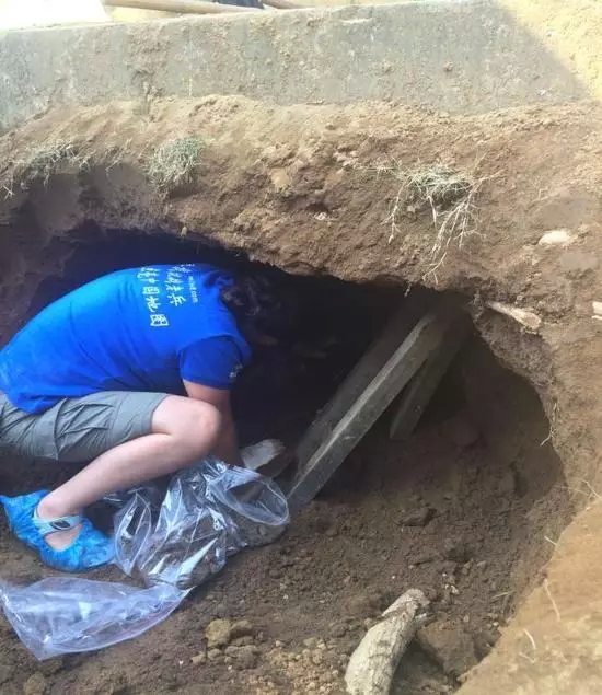 正蹲在洞里清理着,上方的土层突然掉了下来,还好当时头在洞外,只是手臂被砸了一下,被吓得不轻,小心脏跳得扑通扑通的。