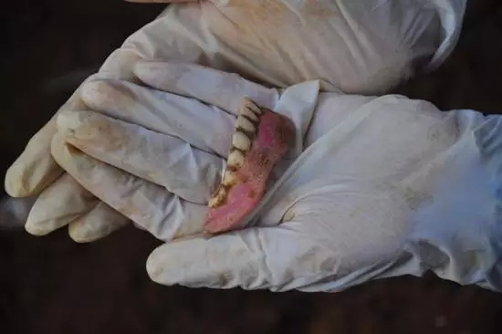 仔细观察了牙齿,磨损度较高,同时在遗骸中我们还发现了一排假牙,他应该不是一位年轻的士兵,也许他在家中早已娶妻生子,也许他的妻子每每见到当兵的都会打听他的消息,也许他年迈的母亲曾站在村口等待归来的孩子,也许她们曾收到过一张阵亡通知书,也许……