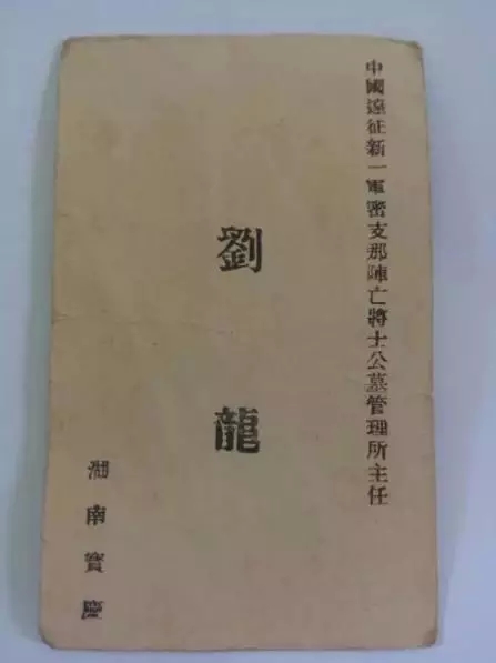 刘龙的儿子将父亲的这些文件都好好的保存着,在一张泛黄的名片上,我们看到“中国远征军新一军密支那阵亡将士公墓管理所主任刘龙”,而名片的左下角,写着他的家乡“湖南”。这是一位负伤的新三十八师荣誉士兵,“因伤残废不能再服兵役业准其退伍看守密支那本师阵亡将士公墓”,他有多想回家,多想带着这些兄弟回到那片他们用鲜血和生命保卫的土地,那里有他们的家人,有他们的父母妻儿,可从生等到死,连他自己也逃脱不了埋骨异域的命运。