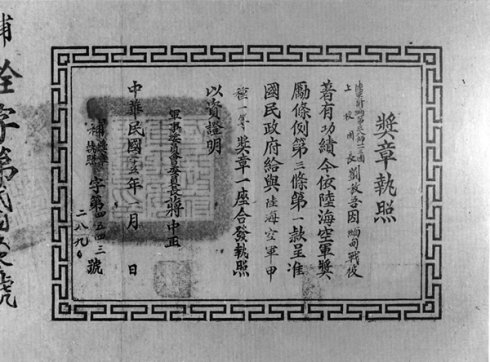 仁安羌大捷50年后,刘放吾获补发的海陆空甲种一等奖章