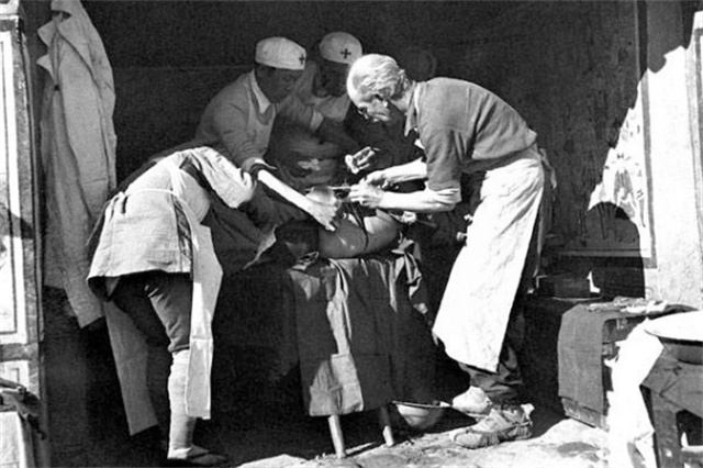 伟大的国际主义战士白求恩为了中国人民的解放事业不远万里来到中国。图为1939年10月24日,白求恩在晋察冀边区为伤员做手术。资料图片。