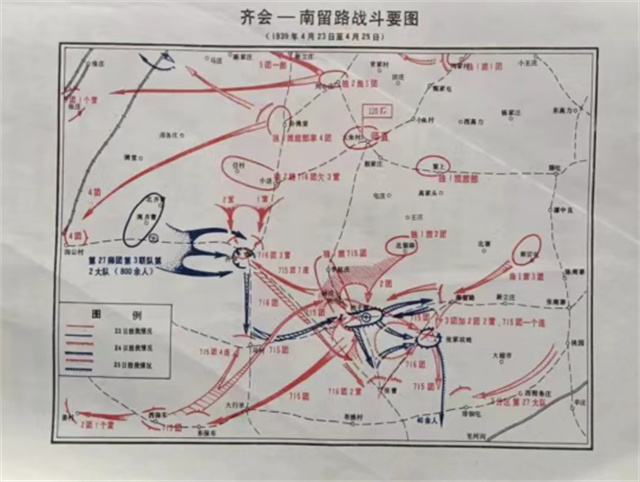 同时,我援军716团1、2营与715团7连陆续从东北、东南方向赶到,形成内外夹击之势。23日晚在夜色掩护下,八路军内外合击同时发起总攻,敌军腹背受敌,阵脚大乱。
