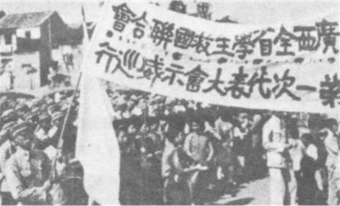 广西学生救国联合会举行示威游行,声援北平学生发起的一二·九运动。