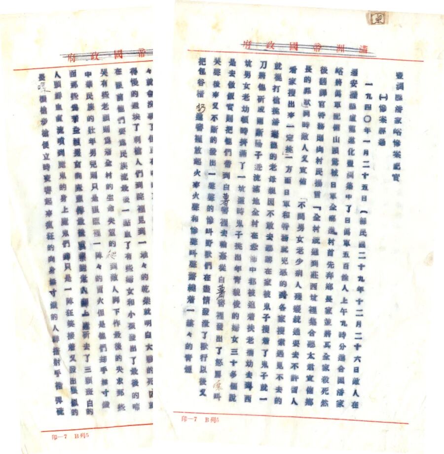 潘家峪惨案纪实(部分) 河北省档案馆藏