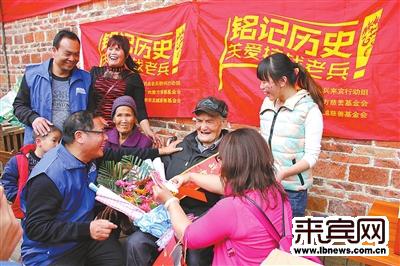 据了解,从关爱抗战老兵行动开始以来,志愿者不断搜集线索,深入乡村寻找散落的抗战老兵,送去“民族脊梁”牌匾及相关物资,让老兵重拾尊严,还对老兵进行援助,缓解他们的贫病困苦。目前来宾已发现的老兵有将近60名,其中已有6名逝世。当天,在给张老庆生结束后,邓美萍和其他志愿者又兵分三路,一队赶去兴宾区凤凰镇看望一名病危的老兵,一队去八一矿区看望新发现的老兵,还有一队赶去忻城县参加两名刚刚逝世的老兵葬礼。