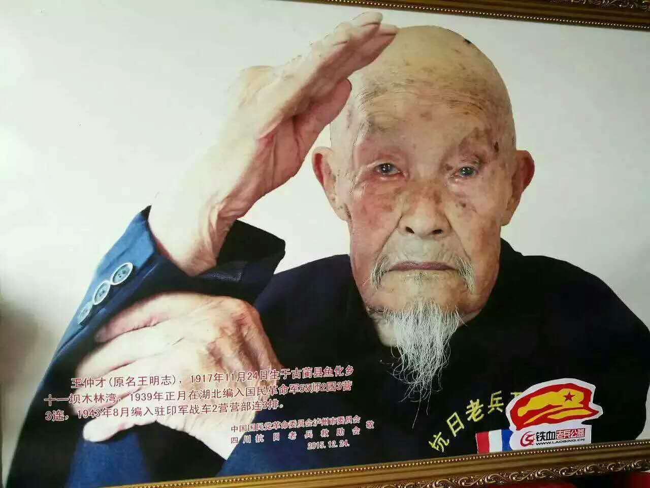 王仲才(原名王明志),男, 1917年11月24日生于古蔺县鱼化乡十一坝木林湾,共四弟兄和两个姐妺,本人是老三,读过几年私书(在部队又读了一些书,在印度还学习了英文,在我们的釆访中还记得一些日常英文单词),民国27年(1938年)7月间,在古蔺县印合乡第10堡, 本人当时叫王明志(与石板沟的是同名就更改为王仲才)和王明科、王天木、王友成等7--8壮年被抽丁,送古蔺、叙永、泸县小市上船经过重庆、丰都、万县、三峡、宜昌等,编入国军55师(罗师长)2团3营3连当伙夫兵,民国28年(1939年)正月间, 开到湖北的过湘河这个地方的第二天就上战场打仗,早晨几个小时后2个团的新兵很快就被打垮,士兵死得不值,没有训练,枪都不会用,他们大约30个打散的兵,大部份的都是在尸体下面爬岀来的伤兵,本人因头天随釆买班长当挑夫出去买菜,才没有被打死,部队没有了,各找求生,他就讨饭回到了古蔺老家务农。