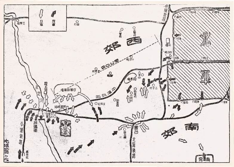 日军绘制的”芦沟桥事变“要图(原载日本《大阪朝日新闻》,1937 年7 月16 日出版)